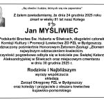 Zasługi śp. Jana Myśliwca dla łowiectwa bydgoskiego, zostały ujęte we wniosku Zarządu Okręgowego PZŁ w Bydgoszczy z dnia 27 grudnia 2025 r. o nadanie Honorowego Żetonu Zasługi – „Złom”.