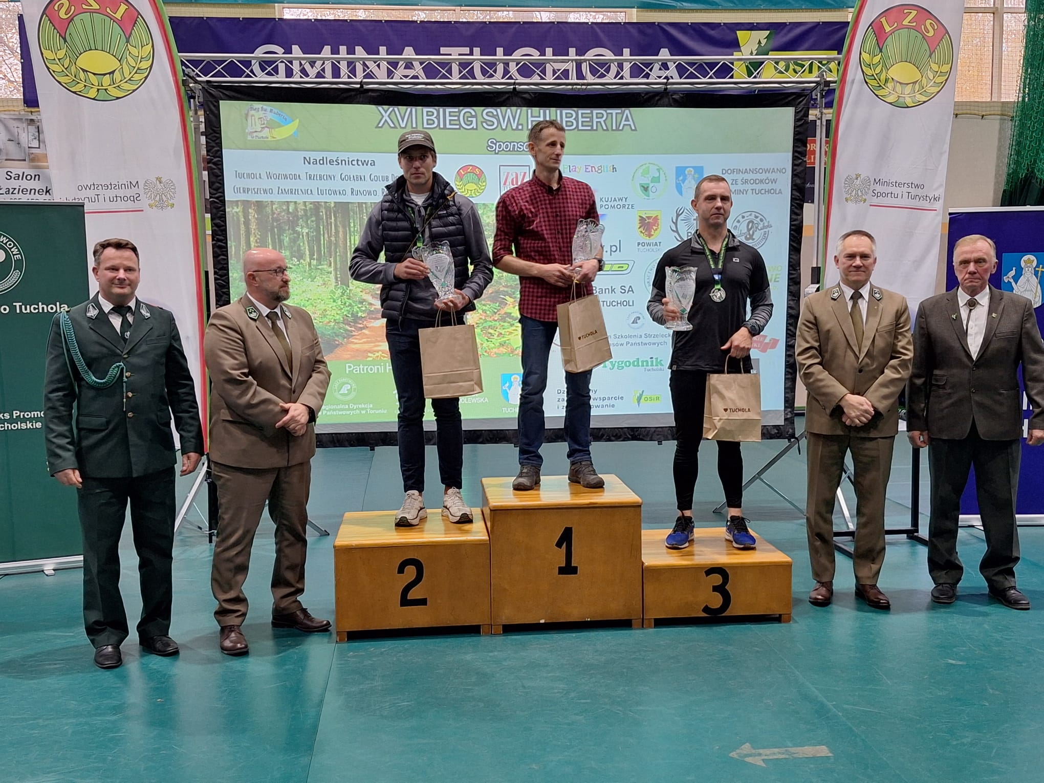 Biegacze wystartowali z okolic Woziwody, w pobliżu Leśniczówki Zielonka i do przebycia mieli 15 kilometrów. Towarzyszyli biegaczom chodziarze z kijkami, którzy swoją trasę rozpoczęli w Gołąbku, a do przejścia mieli 10 km. Sportowcy finiszowali w hali Ośrodka Sportu i Rekreacji w Tucholi, gdzie czekały na nich specjalne medale, wręczane przez uczennice Technikum Leśnego. Potem mogli liczyć na smaczny poczęstunek… Orkiestra Reprezentacyjna Lasów Państwowych dała krótki koncert i później już królowało tylko podium dla najlepszych.