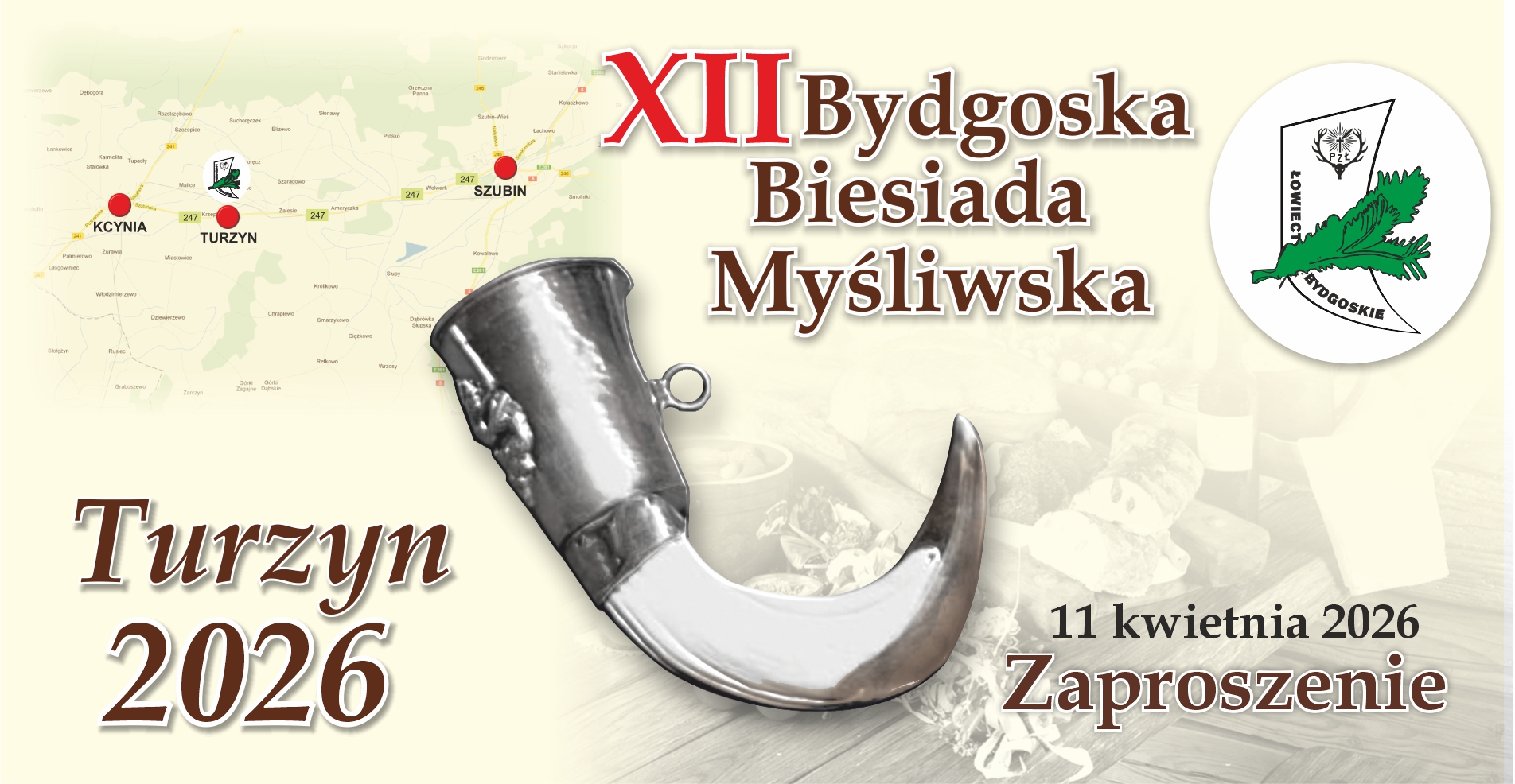 Z ogromną przyjemnością zapraszamy na XII Bydgoską Biesiadę Myśliwską, która odbędzie się 11 kwietnia 2026 r. o godzinie 17.00 w Turzynie u Państwa Morawskich.